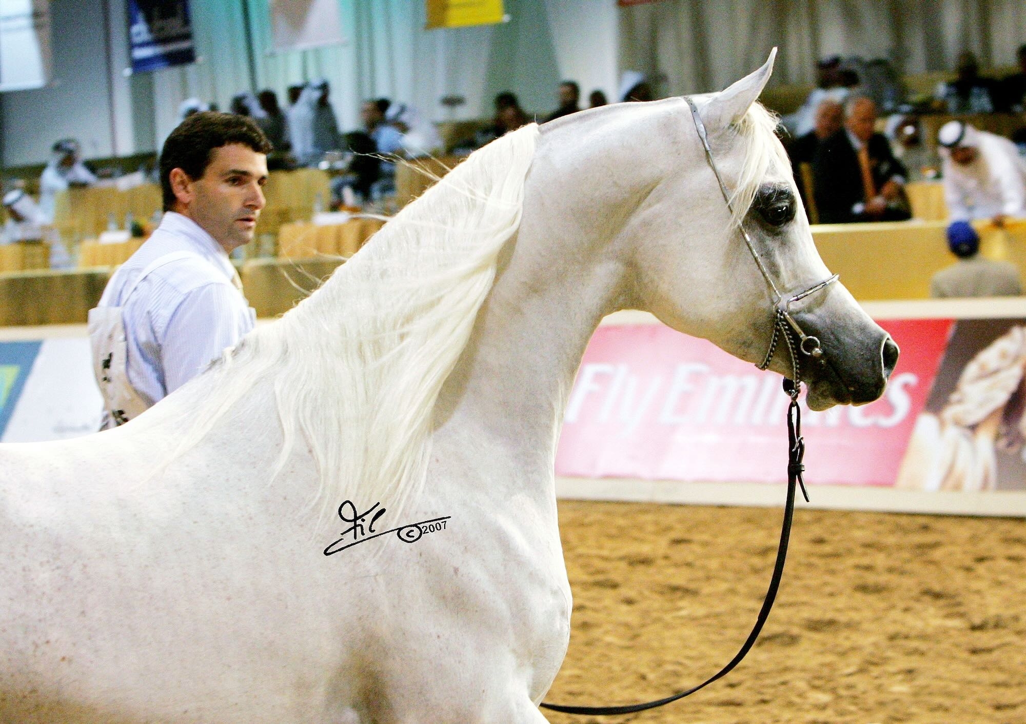 We are very proud to announce that this year, three of our home-bred horses competed at the Dubai International Arabian Horse Championships, which is regarded as one of the world's most prestigious shows, and is one of only five ECAHO "Total shows". The youngest of the three was Al Ayal AA (Al Ayad x The Vision), who won Second Place, with great score, in his large colts class. The second was Badawieh AA (Laheeb x Bahiha), who was named Bronze Champion mare behind the 2009 World Champion Kwestura and Reserve World Champion Ladi Veronika. And last but not least, the eternal beauty Al Lahab (Laheeb and The Vision) won the title of Gold Champion Stallion. Altogether two sons of The Vision competed in the Finals of this exclusive show, ending with one Gold Champion and one Second Place. Two of Laheeb's progeny rewarded their sire with a Bronze and a Gold championship title. We are so proud that these three horses, all from our small breeding program, attained such high achievements at one of the world's most competitive shows. All of them are Straight Egyptian horses! Congratulations to the proud owners of Badawieh AA and Al Lahab, and to the Al Ayal Leasing group. Photo of Al Lahab by Irina Filsinger.