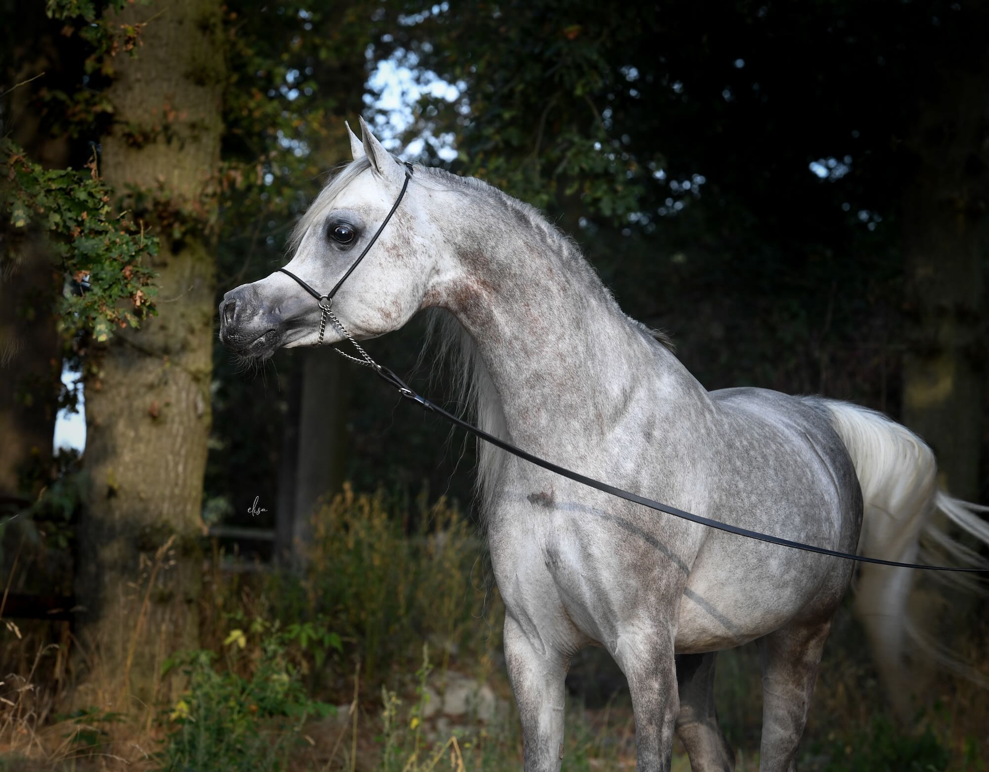 This young grey stallion is sired by one of the world's most beloved Arabian stallions, Shanghai EA, the most famous son of the champion maker WH Justice. The dam of AJ Nawash is the multi champion mare Inspired Najla, daughter of Ajman Moniscione (again a son of WH Justice) out of the Russian-bred mare Natalia. Inspired Najla is also the dam of the two wonderful horses; Cyclone OS and AJ Norah.